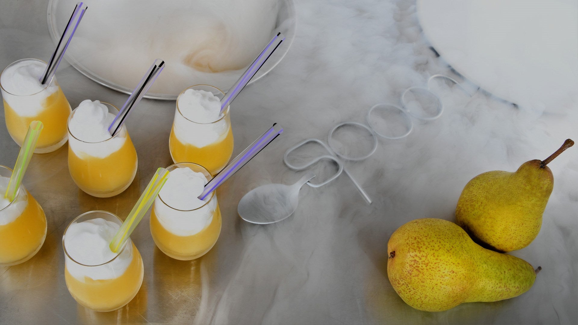 Voilà de quoi surprendre n’importe quel convive ! Des mousses d’eaux-de-vie (poire williamine et abricot) en émulsion légère et soyeuse. Une innovation réalisée sans produits laitiers et alcoolisée à 20°. Des possibilités d’utilisation quasi-infinies.
